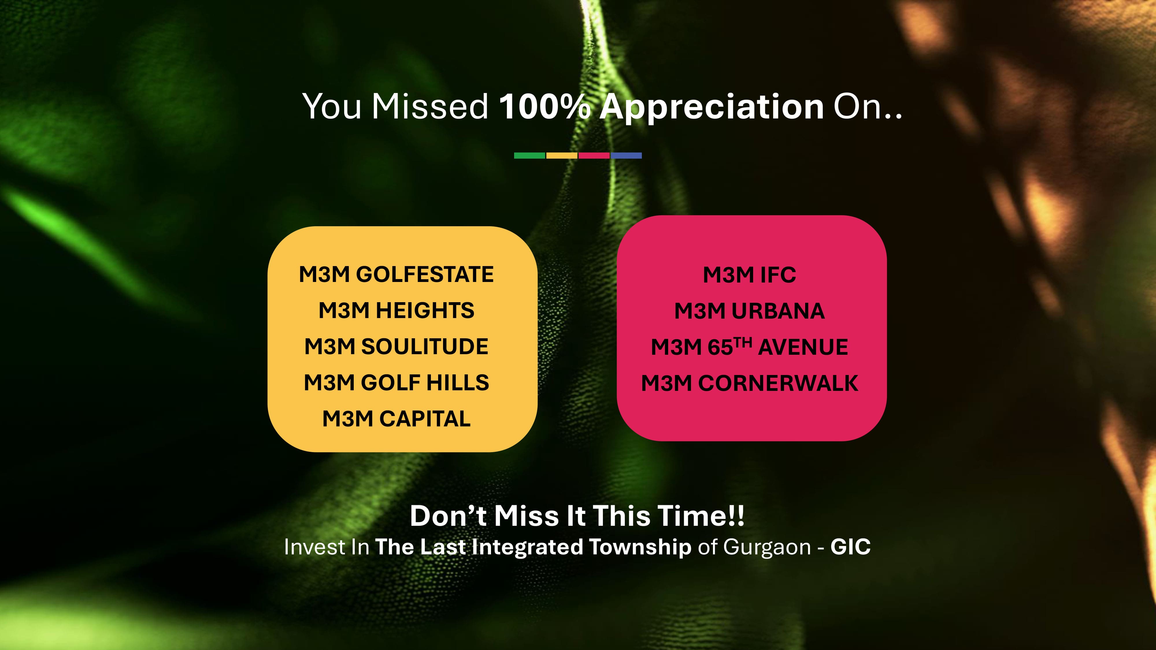 Disclaimer:- Welcome to M3M GIC (“Website”). The contents of this website are for general informational purposes only. By using or accessing this Website and/or the hyperlinks embedded/ mentioned in the Website you agree to abide by the terms and conditions, as set forth herein and as contained in the Website without any qualification or limitation. In the event you do not accept/ agree to the terms of this Disclaimer, you are requested not to use the Website or download materials from the Website. Every endeavor has been made to keep the information updated. However, we make no representations or warranties of any kind, express or implied, about the completeness, accuracy, reliability, suitability or availability with respect to the Website or the information, products, services, or related graphics contained in the Website for any purpose. The Website and all its content are provided on an “as is” and “as available” basis and is intended for informational purposes only. No information given under this Website shall be treated as a warranty or representation by us. Your use of the Website is solely at your own risk. This Website is for guidance only. It does not constitute part of an offer or contract. The contents, including design and specifications are subject to change without prior notice. Computer generated images are the artist’s impression and are an indicative of the actual designs. By using and/or accessing this Website, you, the viewer/user acknowledge that the information including any material/ documents (such as brochures and marketing collaterals) on this Website are solely for informational purposes and you have not relied on this information for making any booking/ purchase/ intention to purchase/ invest in any project(s) of M3M INNOVATION PARK and/or its affiliates. Nothing herein shall be construed as any invitation, or offer for investment or deposit within the terms of the applicable law (as amended from time to time) including without limitation SEBI Act, 1992, Companies Act 2013 etc. and we shall not be liable for any consequence of any action taken by the viewer relying on such material/ information on this Website. The particulars contained on the Website mention details of Projects/ developments undertaken by M3M INNOVATION PARK and/or its affiliates. The contents are being modified in terms of the stipulations/ recommendations under the Real Estate Regulation Act, 2016 and Rules made thereunder (“RERA”) and accordingly may not be fully in line thereof as of date. Use of information shall be governed by Indian laws, RERA; subject to jurisdiction of Competent Authority under RERA, courts at Gurugram/ Haryana India. You are further advised to verify all the details, including area, amenities, services, terms of sales and payments and other relevant terms independently with the sales team independently, subject to prior appointment during working hours and speak to one of our sales staff, prior to concluding any decision for buying any unit(s) in the said project. In no event shall M3M INNOVATION PARK, its affiliates, employees, directors and/or officers be made liable for any claim as a result of any inaccuracies in the information provided in this Website, though all efforts have to be made to ensure accuracy and under no circumstances shall we be liable for any expense, loss or damage including, without limitation, indirect or consequential loss or damage, or any expense, whatsoever arising from use, or loss of use, of data, arising out of or in connection with the use of this Website.